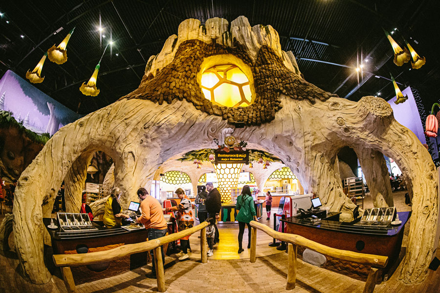 Když vás přepadne hlad a žízeň, je tu pro vás připraveno občerstvení doslova uvnitř obřího stromu, který pojme najednou až 200 hladových strávníků. Pohádkové menu nabízí oblíbenou dětskou klasiku, jako je smažený řízek, burger, kuřecí nugety, hranolky nebo párek v rohlíku. Potěší ale také ty, kteří dávají přednost lehčím pokrmům, jako těstoviny, zeleninové saláty, výtečné sendviče a polévky. Nechybí bohatá nabídka nealkoholických nápojů v čele s ledovou tříští všech barev, která je třetím nejprodávanějším produktem, sladké dezerty, zmrzlina, a dokonce i víno a Prosecco. Všechno je vyladěné do posledního detailu a plánuje se velké rozšíření.